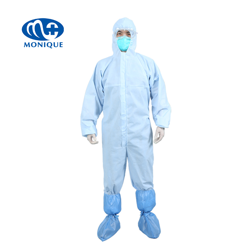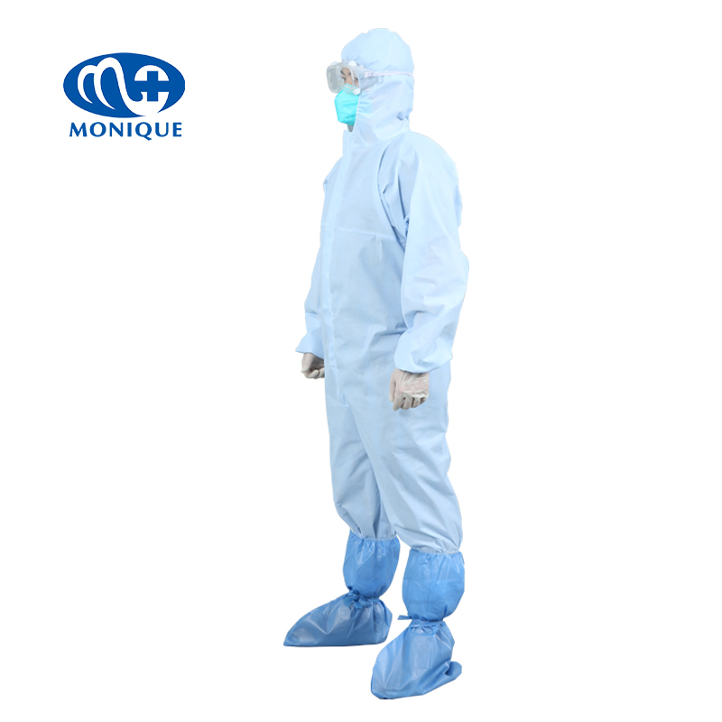 Als professionele fabrikant wil Anhui Monique Medical Materials Co., Ltd. u graag een wegwerpbeschermende CE FDA-goedgekeurde overall aanbieden. De wegwerpbeschermende CE FDA-goedgekeurde overall is gemaakt van 80 g SFS, dat licht en ademend is om te dragen en een goed beschermend effect heeft. Het beschermende pak is fijn gemaakt en zorgvuldig gesplitst, wat comfortabel is om te dragen, en het is niet benauwd om te dragen voor een lange tijd. De manchetten, broekspijpen en taille van de beschermende kleding zijn voorzien van een elastische bandsluiting om de beschermende kleding beter passend te maken en het beschermende effect te garanderen.